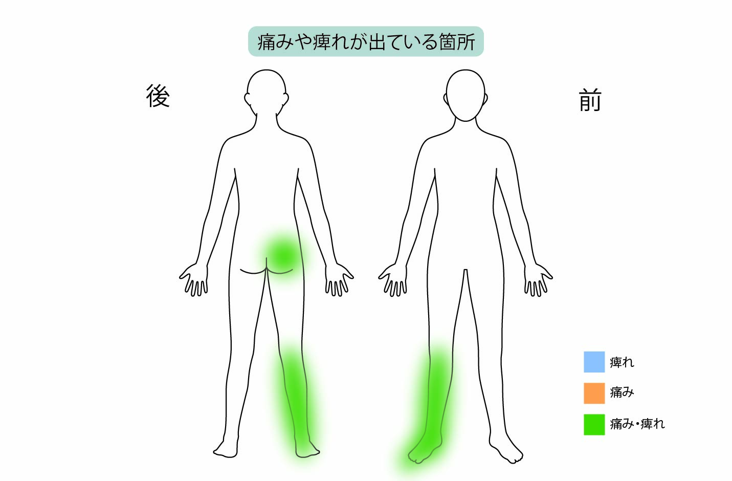 右のお尻と、右膝から右下腿に痛みと痺れがあり、日帰り手術での治療を希望して当院を受診されました。