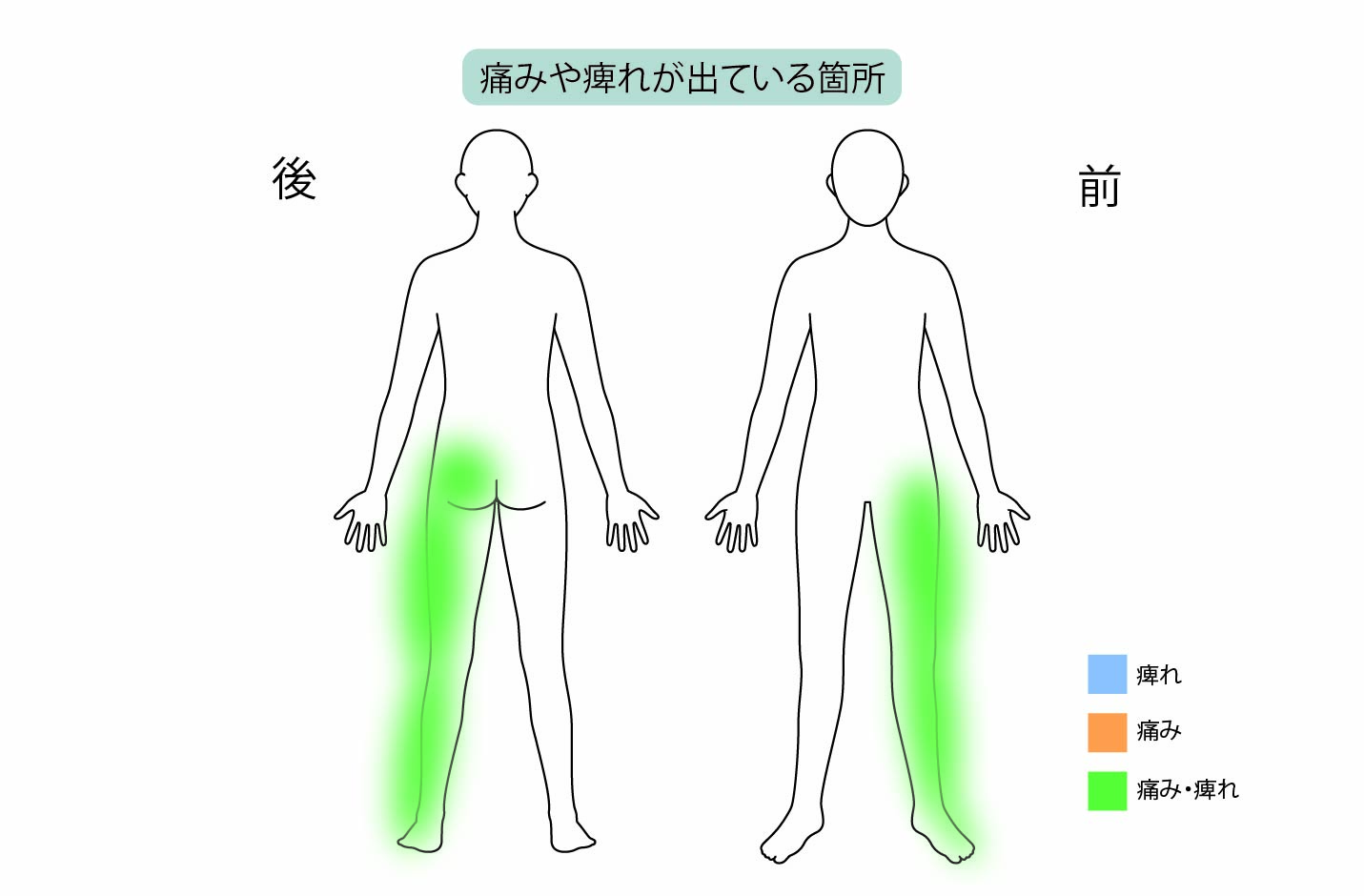 左臀部と下肢の外側に痛みと痺れがあるとのことで、他院にかかったところ、腰部脊柱管狭窄症と診断されたとのことです。その後、治療方法に、日帰り手術を希望されたため当院を受診されました。