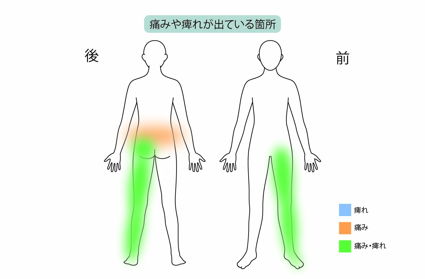 腰痛だけでなく、左臀部下肢に痛みと痺れが出てきたため、他院を受診したところ「脊柱管狭窄症」と診断を受けたとのことです。治療方法に日帰り手術を希望されていたため、当院を受診されました。