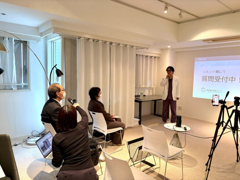 本セミナーは、毎月1回実施している院長の田中聡による無料セミナーです。腰痛治療の中でも「日帰り手術」にフィーチャーして疑問に答えています。また「質問などにも丁寧に対応したい」という思いから参加可能人数を絞って開催しております。来場が難しい方にも参加いただけるようInstagramやYoutubeでもライブ配信を行いました。